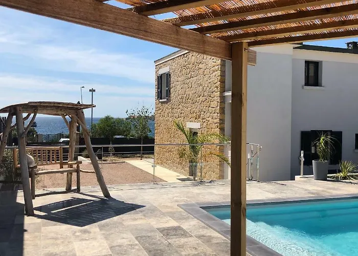 Die 3-Zimmer- La Pointe D'Aspretto verfügt über eine Terrasse mit Aussicht auf den Pool sowie einen Swimmingpool.